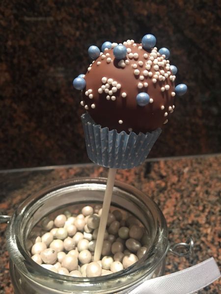 Kugel braun mit grossen Perlen hellblau und Perlen weiss