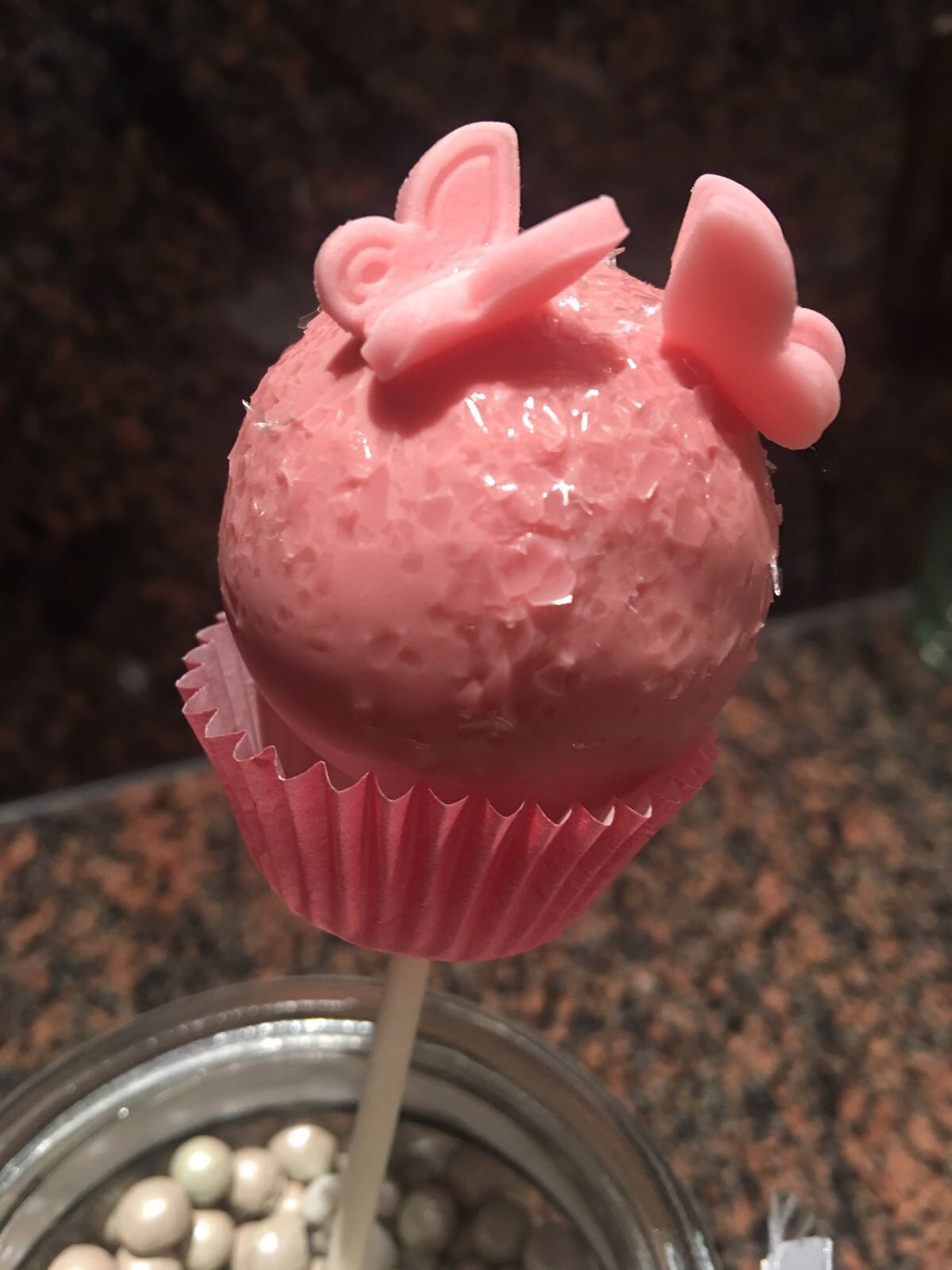 Kugel rosa mit zwei Sommervögel rosa und Schnee