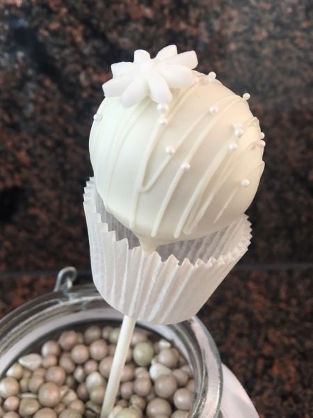 Kugel weiss mit Blume weiss und weiss filiert und weisse Perlen